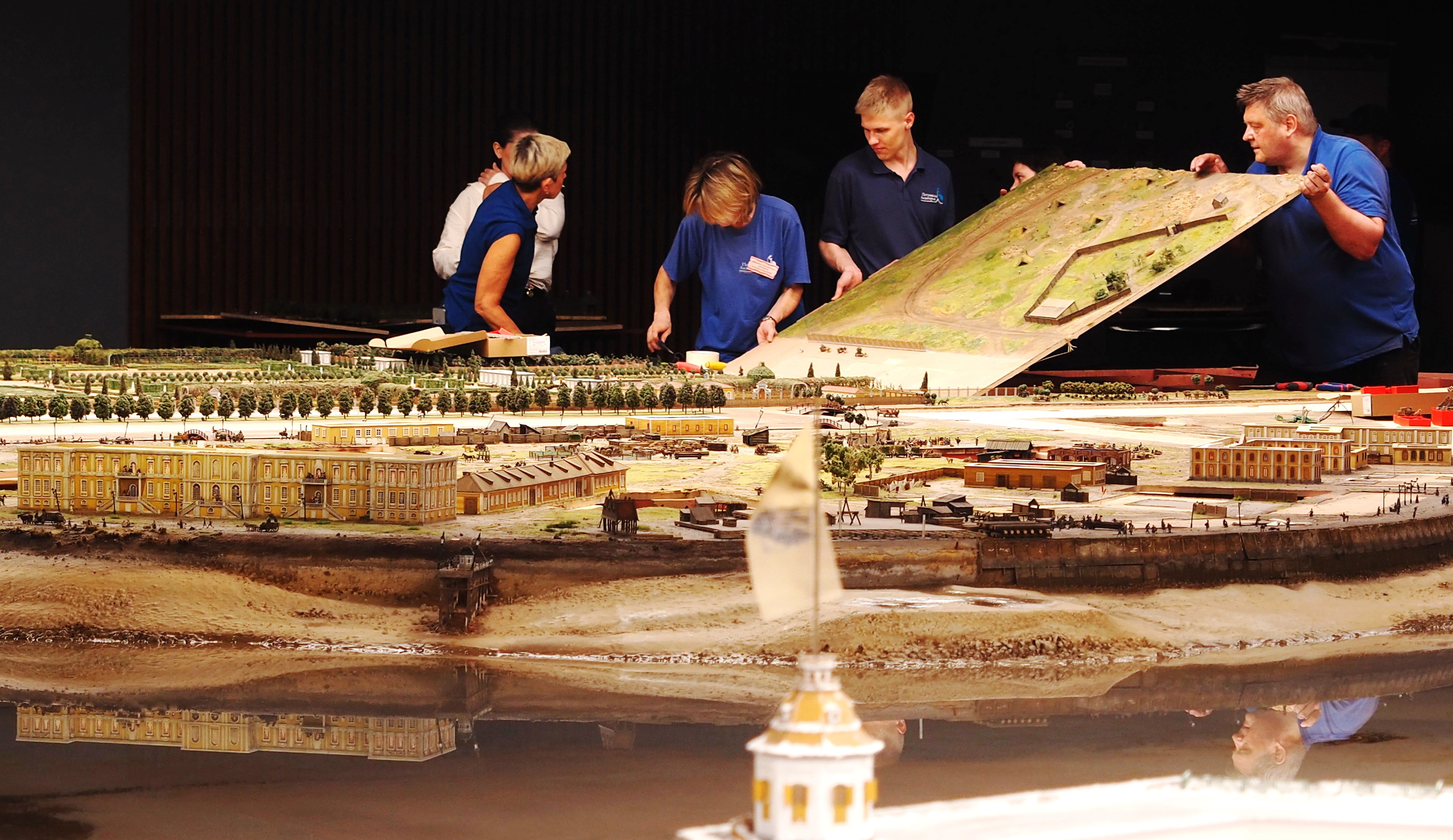 Только сейчас у гостей «Петровской Акватории» появится эксклюзивная возможность: заглянуть «за кулисы» создания миниатюрного Петербурга. Музей работает в режиме технического тестирования, восстановление экспозиции ещё продолжается. На экскурсии можно увидеть, как рождается город: где-то зажигаются окна, где-то ещё только расставляют крошечных персонажей, а по водной глади уже начинает свое движение петровский флот. Это живой, динамичный процесс – стать его свидетелем можно только здесь и только в эти дни.